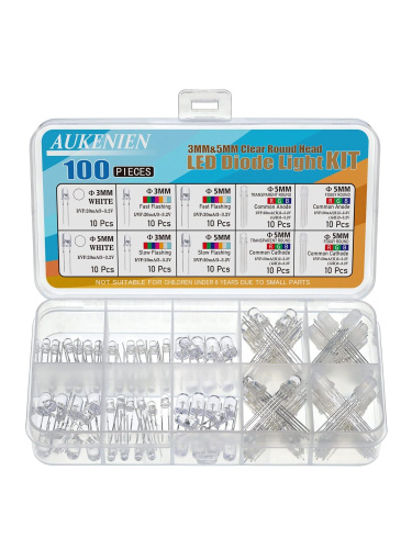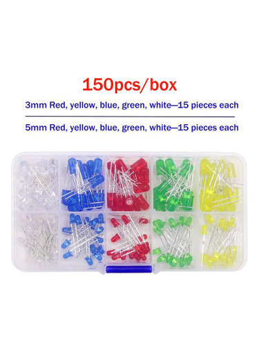 Набор диффузных светодиодов 5 мм различных цветов в пластиковом боксе для электронных экспериментов