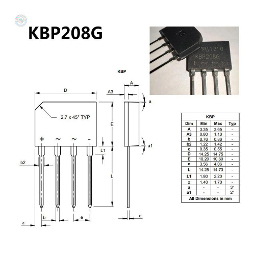 Мостовой выпрямитель KBP208G, 5 шт, 800 В 2 А, DIP-4, для ремонта блоков питания, зарядок, светодиодных драйверов и бытовой техники