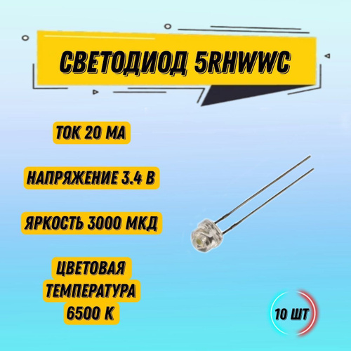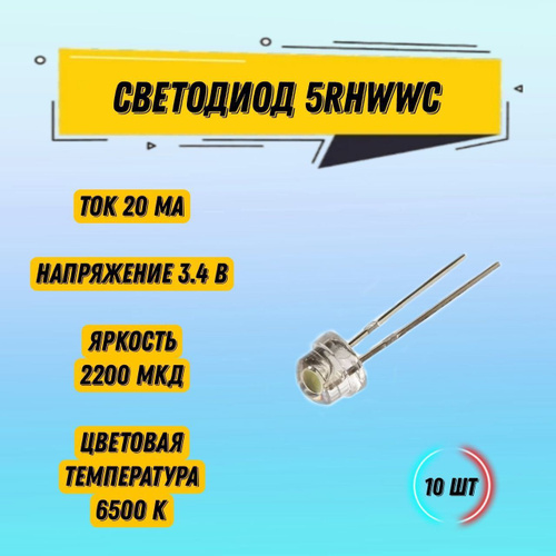 10 шт Светодиод индикаторный 5RHWWC 3000mcd 6500K 3.4v 70d холодный белый