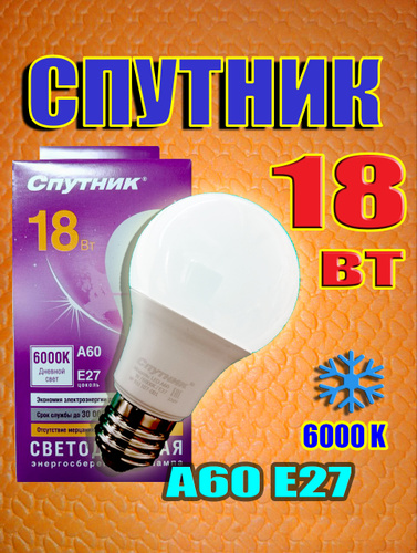 Лампочка светодиодная Спутник LED A60 (груша) 18w, E27, 6000K (дневной свет). 1 шт.