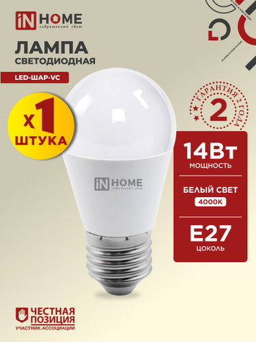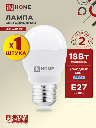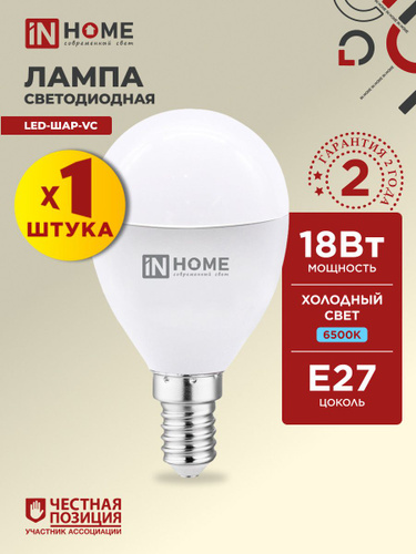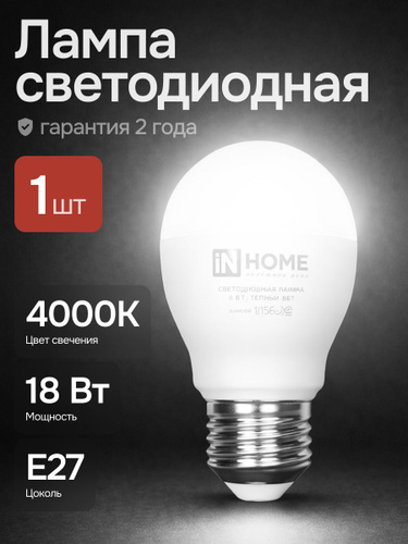 Лампочка светодиодная Е27 шар 18W нейтральный дневной свет 4000К 1620Лм IN HOME