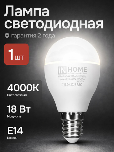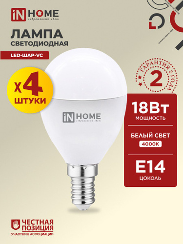 Лампочка светодиодная Е14 шар 18W нейтральный свет 4000К 1620Лм упаковка 4шт. IN HOME