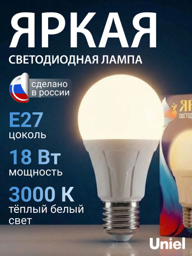 Лампочка светодиодная Е27, 18Вт, 3000К, A60, Uniel
