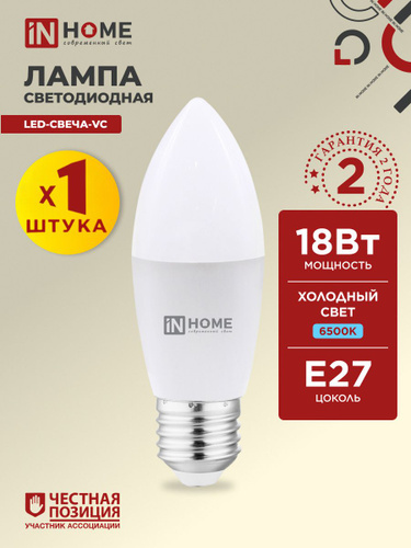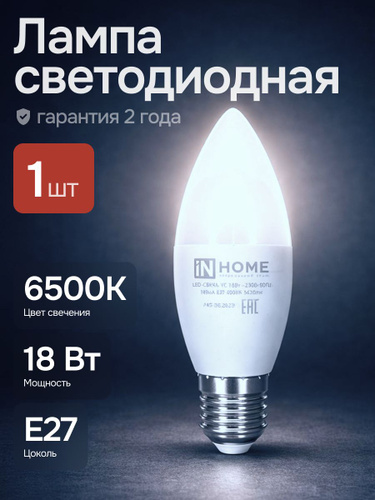 Лампочка светодиодная Е27 свеча 18W холодный свет 6500К 1620Лм IN HOME