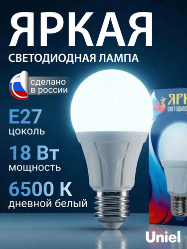 Лампочка светодиодная Е27, 18Вт, 6500К, A60, Uniel