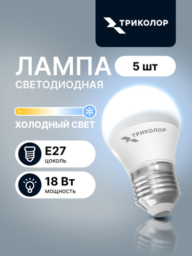 Лампочка светодиодная E27 18 Вт Холодный свет,5 шт