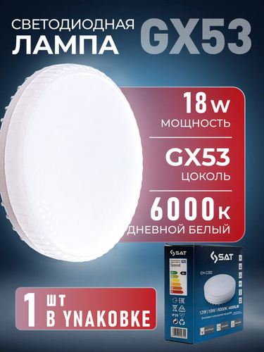 Лампа светодиодная GX53 таблетка 18Вт 6000К холодный белый свет SAT, 1 шт
