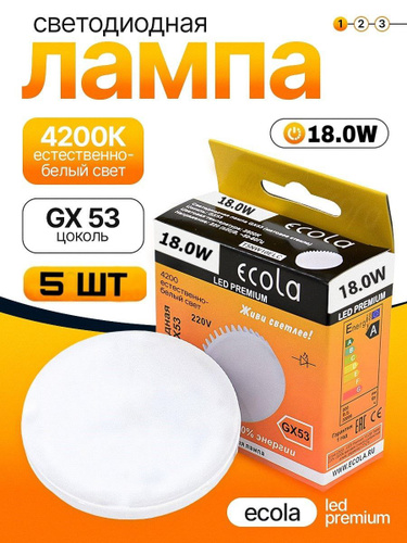 Ecola Лампочка, Цоколь:GX53, 18 Вт, Светодиодная, 5 шт.