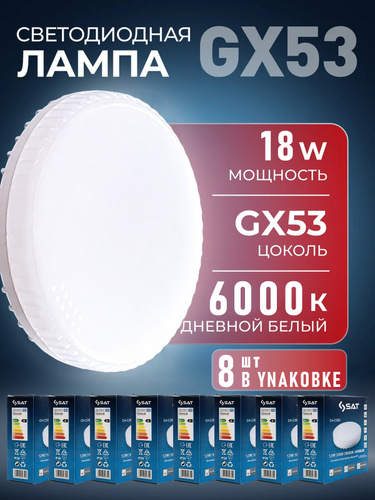 Лампа светодиодная GX53 таблетка 18Вт 6000К холодный белый свет SAT, 8 шт