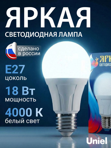 Лампочка светодиодная Е27, 18Вт, 4000К, A60, Uniel