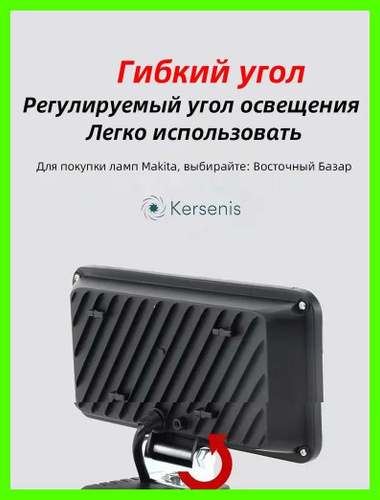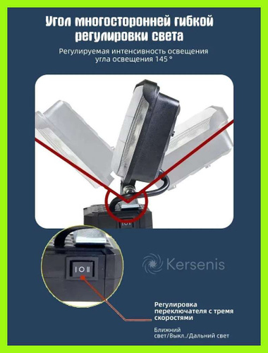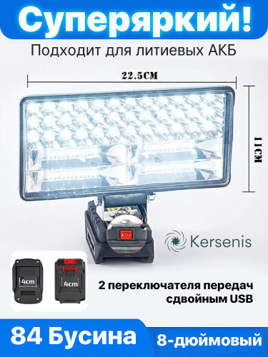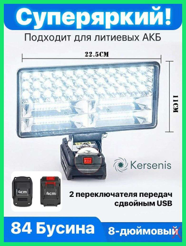 Строительный фонарь-прожектор светодиодный Kersenis аккумуляторный 18-21В, 3200 Лм, с 2 портами USB, совместим с Makita 18V (без АКБ и ЗУ)