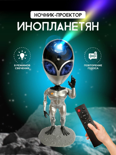 Ночник проектор "Nebula Projection" звездного неба Инопланетянин детский / Светодиодная звездная проекционная лампа Nebula Projection интерактивный атмосферный ночник