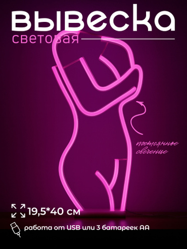 Неоновая вывеска силуэт девушки на стену, настенный светильник-ночник в комнату
