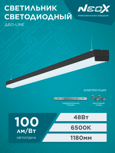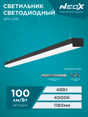 Светильник светодиодный подвесной 48Вт нейтральный белый свет 4000К 4800Лм 1180мм черный NEOX