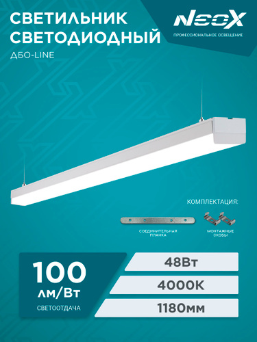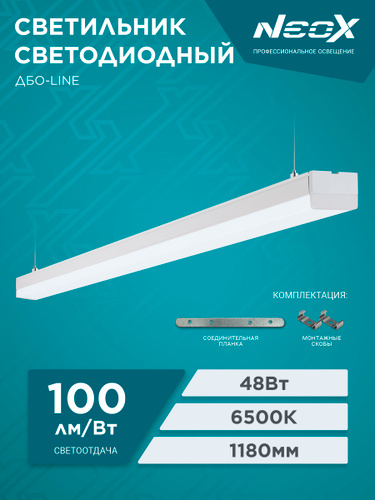 Светильник светодиодный подвесной 48Вт холодный белый свет 6500К 4800Лм 1180мм белый NEOX