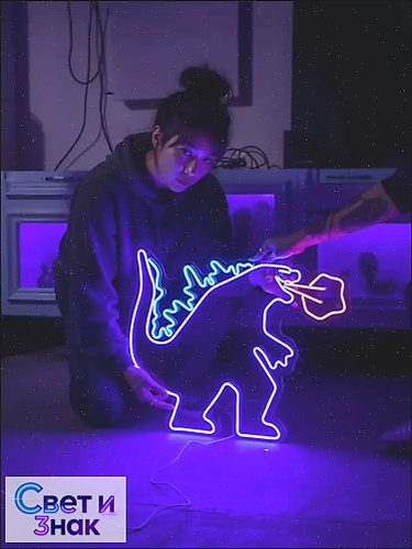 Неоновая вывеска синяя "Годзилла", настенный светильник светодиодный, ночник в розетку