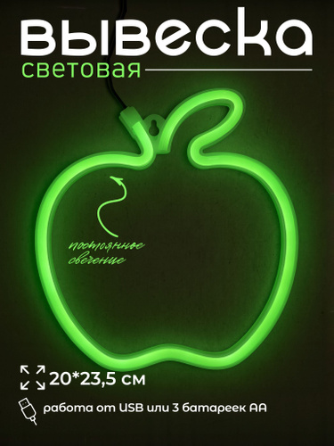 Неоновая вывеска яблоко на стену, настенный светильник-ночник в комнату
