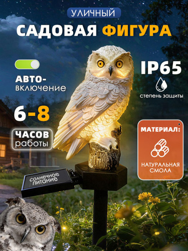 Садовые солнечные фонари "Сова", декоративный светильник фигура из натуральной смолы, уличный фонарь на солнечной батарее IP65