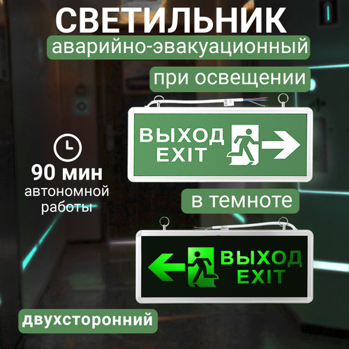 Аварийный светильник "ВЫХОД-EXIT" фигура-стрелка, аккумуляторный, 90 минут, REXANT