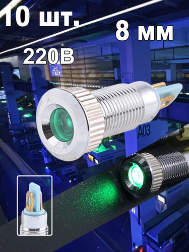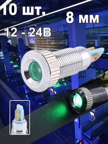 10 шт. Светодиодный модуль8 мм металлическая индикаторная лампа водонепроницаемая сигнальная лампа с проводом 12B 24B, Зелёный свет