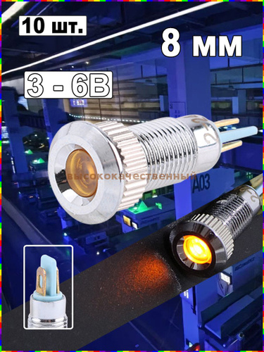 10 шт. Светодиодный модуль8 мм металлическая индикаторная лампа водонепроницаемая сигнальная лампа с проводом 3B 5B 6B, Жёлтый свет