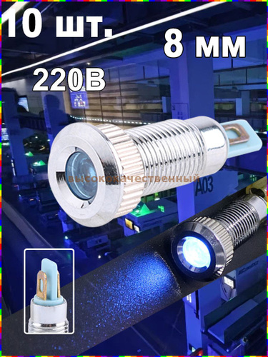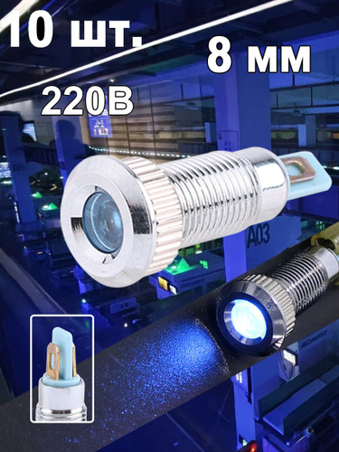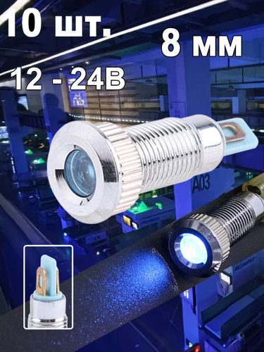 10 шт. Светодиодный модуль8 мм металлическая индикаторная лампа водонепроницаемая сигнальная лампа с проводом 12B 24B, Синий свет