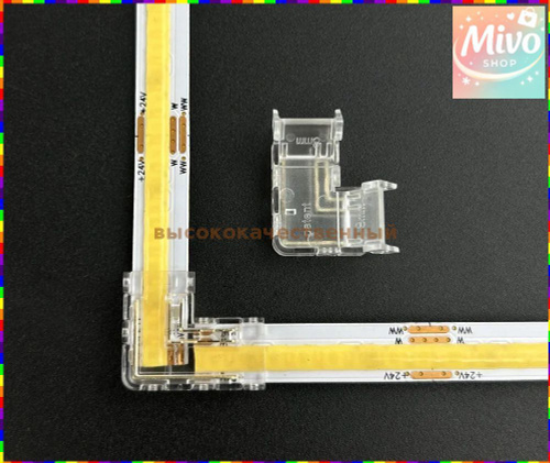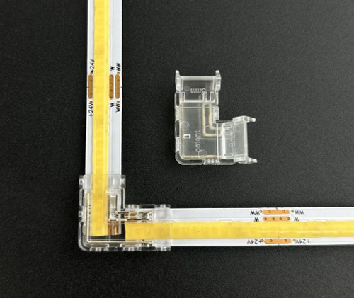 Коннектор угловой для светодиодной ленты двухцветной типа COB шириной 8мм 3pin, угловой соединитель для COB LED ленты 8mm трехконтактный прокалывающий. L-Уголок.