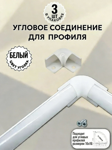 Соединитель угловой Белый 90 градусов для светодиодного профиля 16х16, 3шт