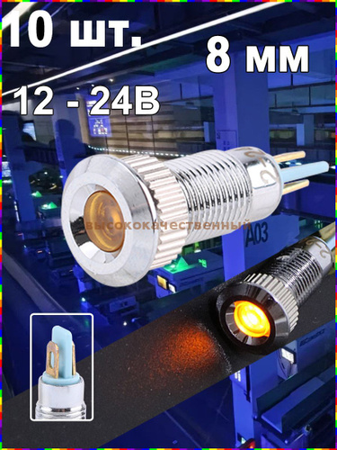 10 шт. Светодиодный модуль8 мм металлическая индикаторная лампа водонепроницаемая сигнальная лампа с проводом 12B 24B, Жёлтый свет