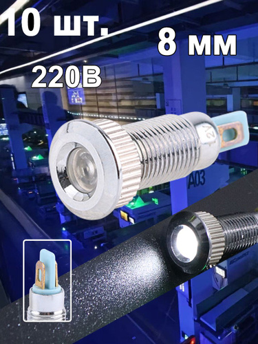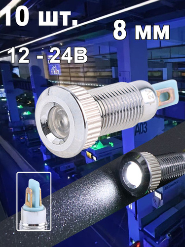 10 шт. Светодиодный модуль8 мм металлическая индикаторная лампа водонепроницаемая сигнальная лампа с проводом 12B 24B, Белый свет