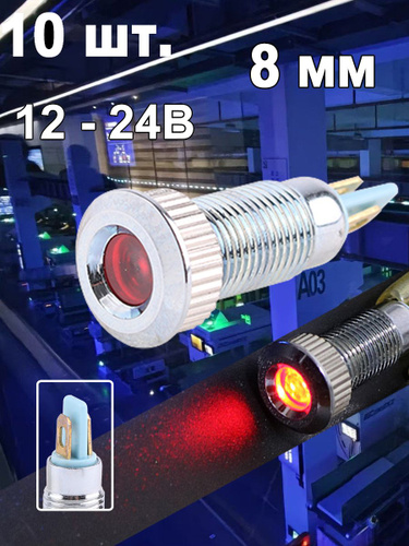 10 шт. Светодиодный модуль8 мм металлическая индикаторная лампа водонепроницаемая сигнальная лампа с проводом 12B 24B, красный свет