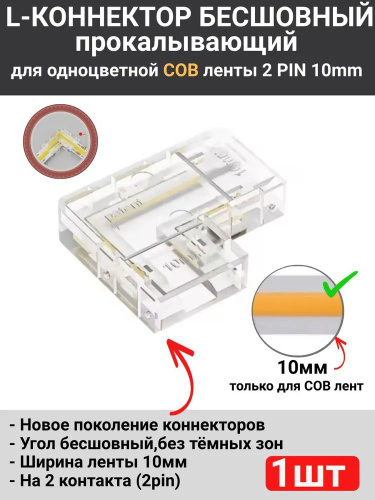 Коннектор угловой для светодиодной ленты одноцветной типа COB шириной 10мм 2pin, угловой соединитель для COB LED ленты 10mm двухконтактный прокалывающий. L-Уголок.