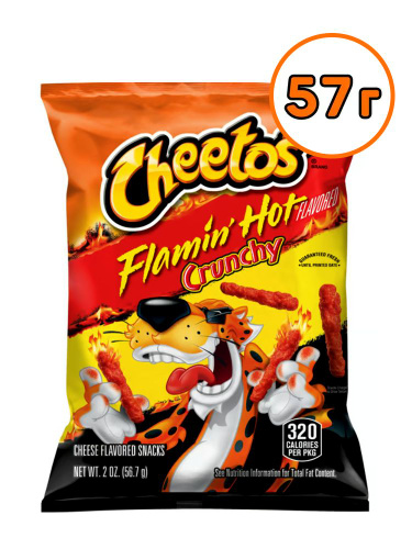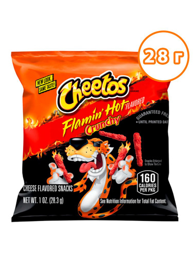Cheetos Flamin Hot Crunch кукурузные со вкусом сыра и острой приправы, пикантный огненный перекус для вечеринок, отдыха и перекуса вне дома, 28,3 г (Cheetos, США)
