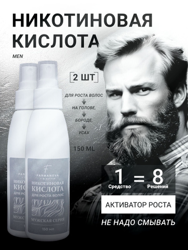Сыворотка для роста волос на голове, бороде и усах. Никотиновая кислота МУЖСКАЯ. 150 мл х 2 шт.