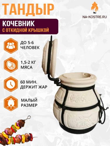 Тандыр Персидский с откидной крышкой, с термометром / большой тандыр Перс Толпар (125кг, 60л), цвет слоновая кость