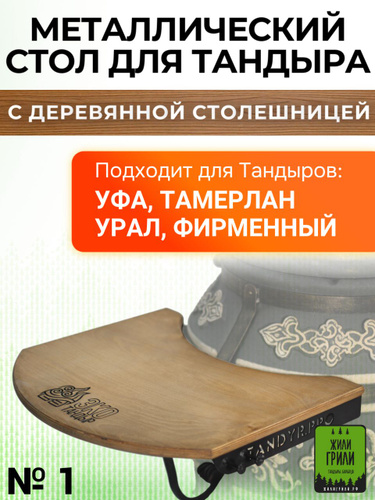 Металлический стол с деревянной столешницей для тандыра для тандыров Уфа, Фирменный, Урал, Тамерлан / боковая полка
