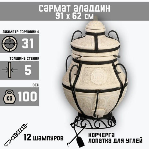Тандыр "Сармат Аладдин" мини, h - 91 см, d - 62, 100 кг, 12 шампуров, кочерга, совок