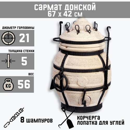 Тандыр "Сармат Кочевник" h - 63 см, d - 45, 51.8 кг, 8 шампуров, кочерга, совок