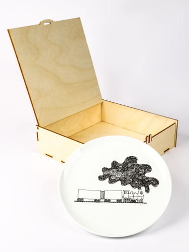 Тарелка "Поезд с дымом" 18 см. "Особая керамика"