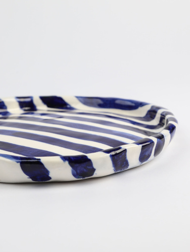 Тарелка ручной работы керамическая с синими полосками "Жизненный путь" 20 см