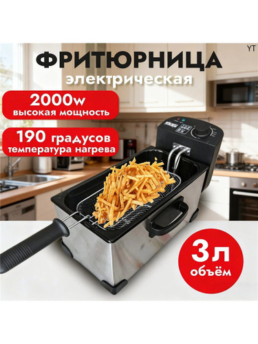 Электрическая фритюрница 3 л/2000 Вт, серебристая / фритюрница со съемной чашей для картофеля фри, котлет, сосисок в тесте