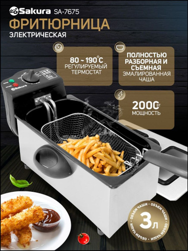 Фритюрница электрическая 2.5L с большой вместимостью, идеальна для жарки курицы, картофеля фри и шашлыка