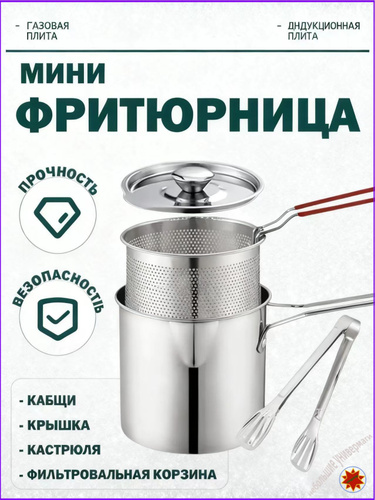 Мини фритюрница из нержавеющей стали для приготовления картофеля фри на газовой плите