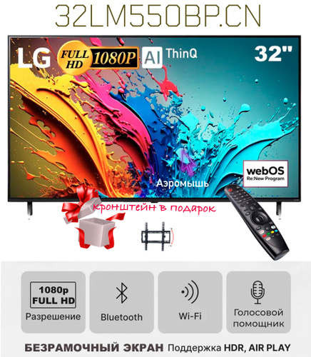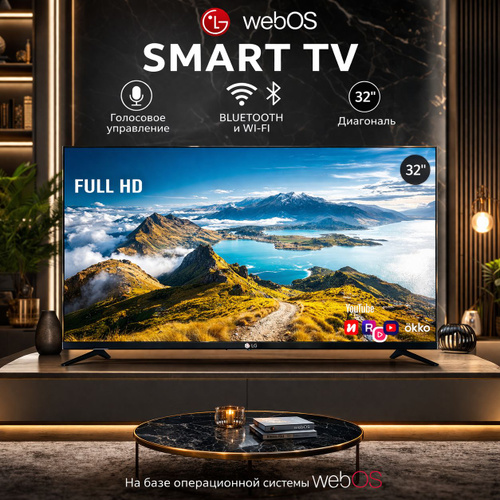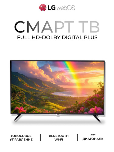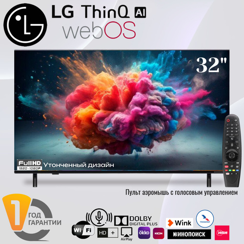 Телевизор Smart TV 32" LG Full HD-Dolby Digital Plus - с искусственным интеллектом и пульт аэромышь с голосовым управлением 32″ Full HD, черный