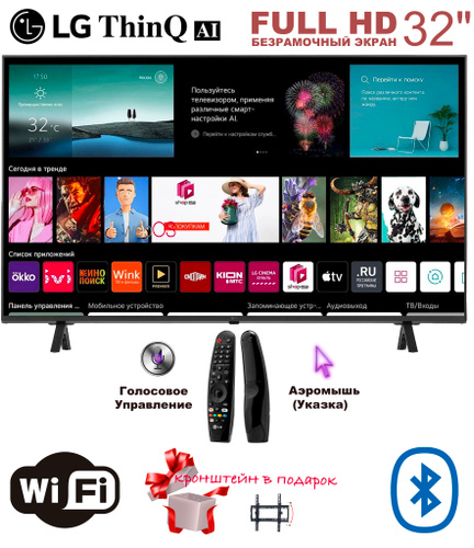 Телевизор LG Телевизор LG-ThinQ AI - Smart TV FHD 32 -ДУ Аэромышь - С голосовым управлением. 32" Full HD, черный 32″ Full HD, черный