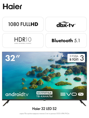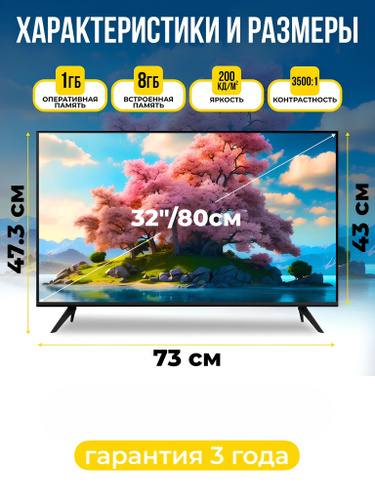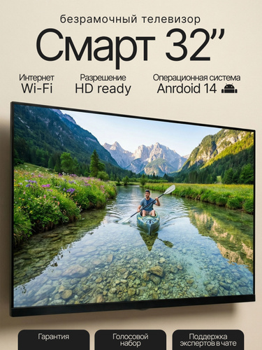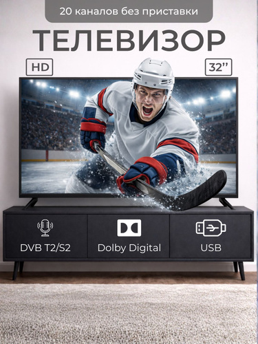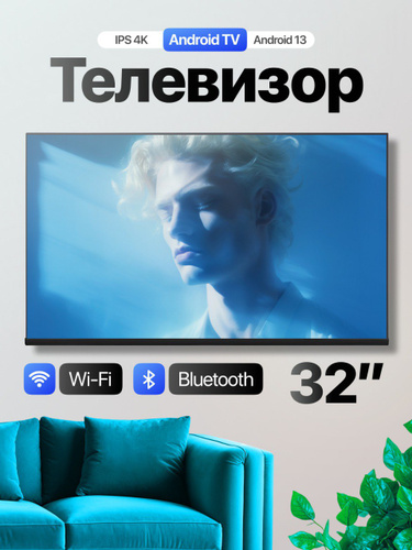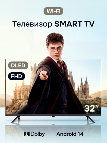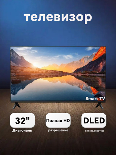 Телевизор co Smart TV,Телевизоры на кухню,Домашнее телевидение,wifi(2.4GHZ/5GHZ) 32″ Full HD, черный
