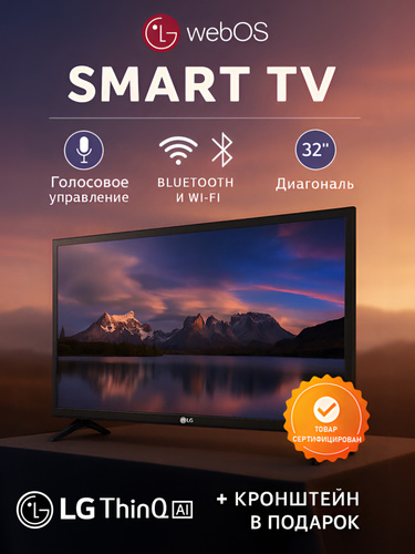 LG Телевизор LG-ThinQ AI- Smart TV 32"- с голосовым управлением Full HD, черный