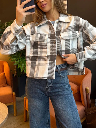 Теплая рубашка женская укороченная