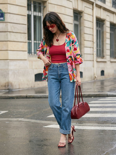 Рубашка в клетку укороченная оверсайз