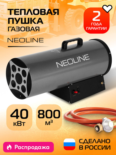 Газовая пушка тепловая NEOLINE NHG-50, серый, 40 кВт, 720 м3/час, защита IP10, для помещений до 800 куб.м.